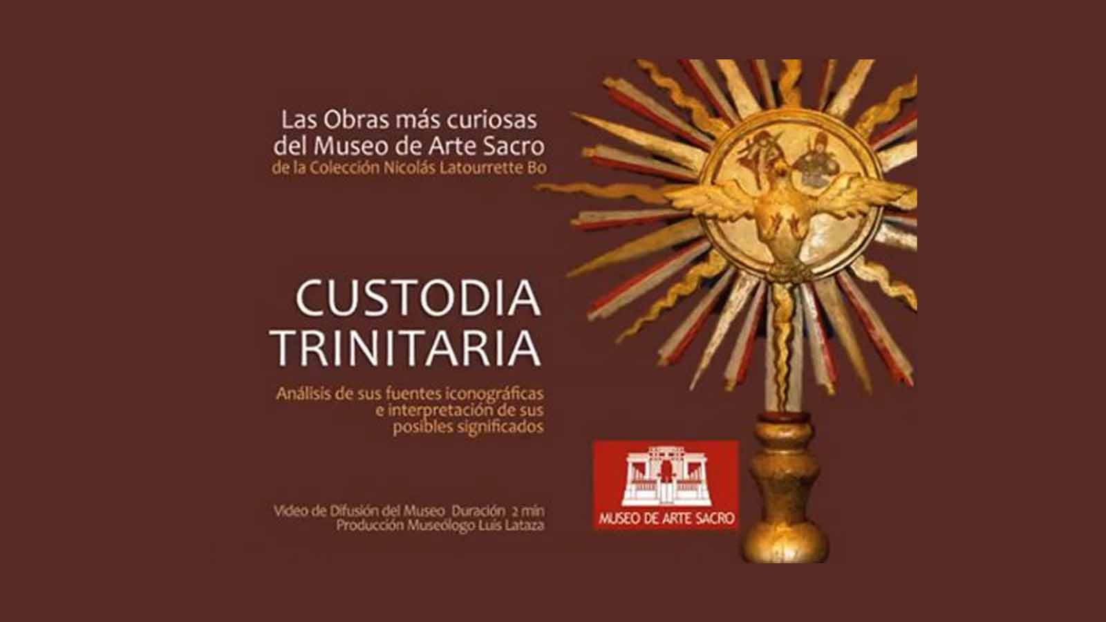 El Museo de Arte Sacro es un museo iconográfico y su Colección está ordenada en forma temática. Entre sus 97 obras hispano-guaraníes algunas destacan especialmente por su complejidad iconográfica como es el caso de esta Custodia trinitaria, un anónimo hispano-guaraní del Siglo XVIII.